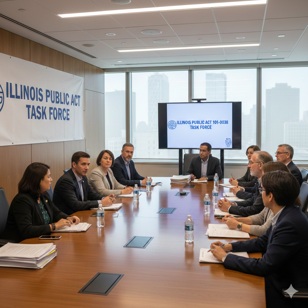 The Illinois Public Act 101-0038 Task Force includes a broad, diverse membership, ensuring a variety of perspectives and expertise. The Task Force is made up of: