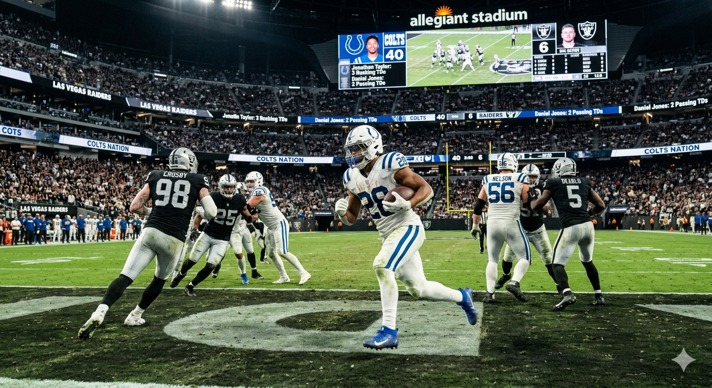 Jonathan Taylor powered through the Raiders’ defense with 22 rushes for 125 yards and 2 touchdowns. Taylor’s yard-after-contact ability wore down the Raiders, helping the Colts maintain a strong lead throughout the game.
